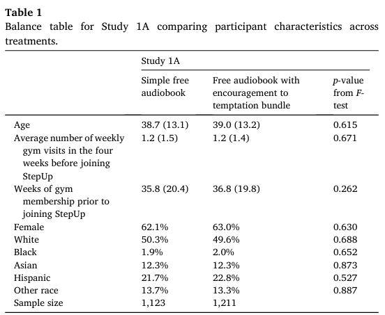 The following table is an example of a balance check from Kirgios et al (2020). The characteristics of the members of each group are compared, with a statistical test to check that there is not a statistically significant difference in these characteristics.